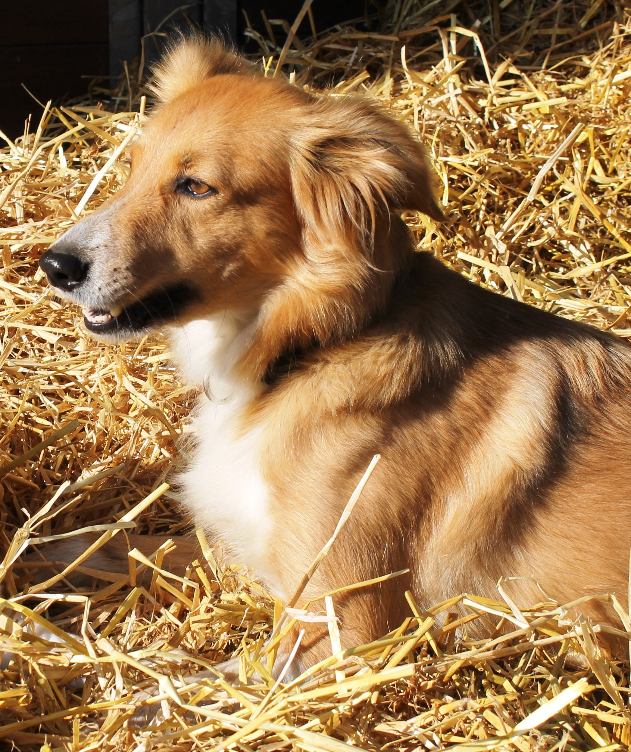 Stella ist die Mischlingshündin von Claus. Sie ist die Chefin und ist meistens entspannt, wenn Nouki mal wieder aufdreht. Stella ist der Ruhepol des Hofes und genießt mit der Anmut einer Sphinx jede Streicheleinheit.